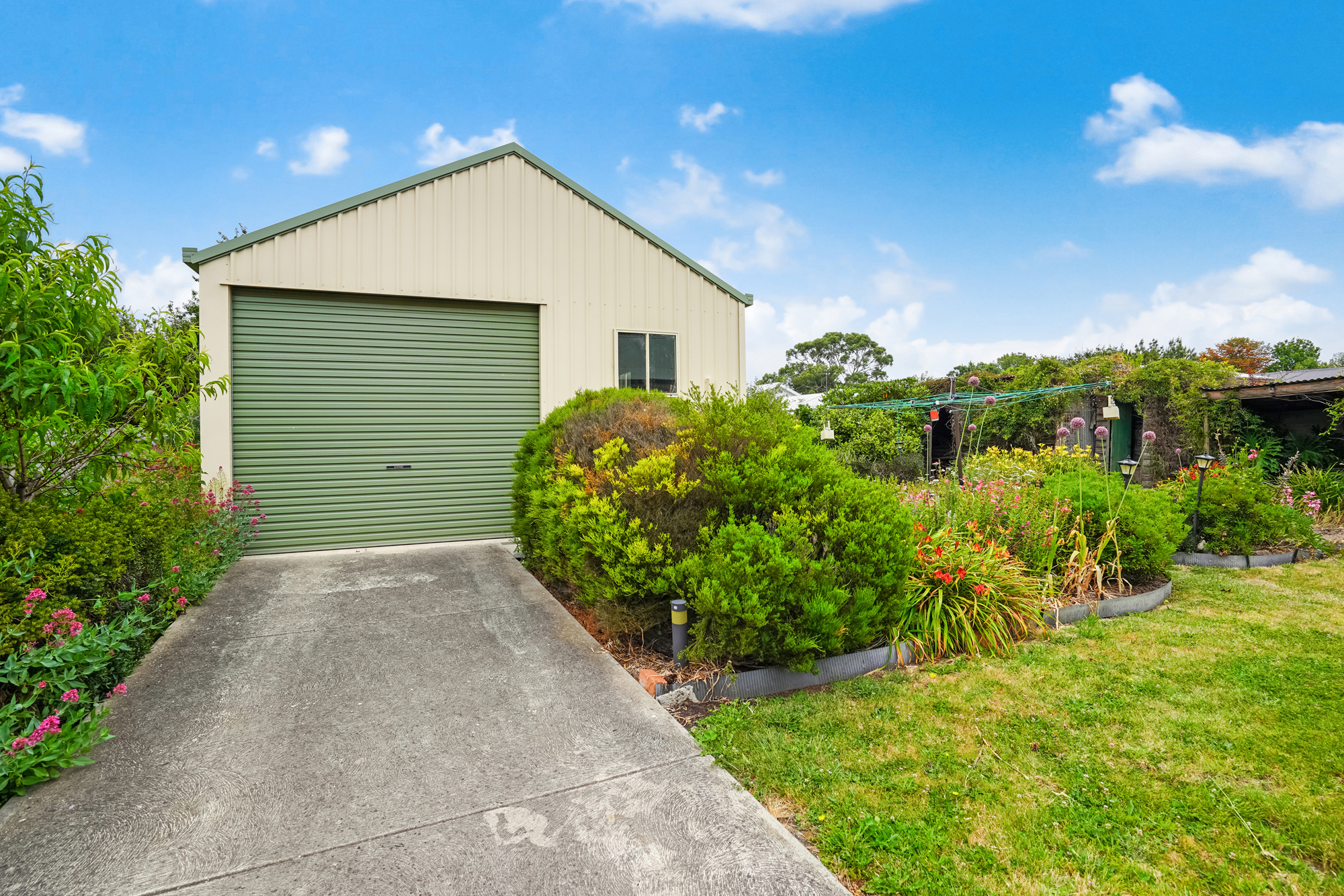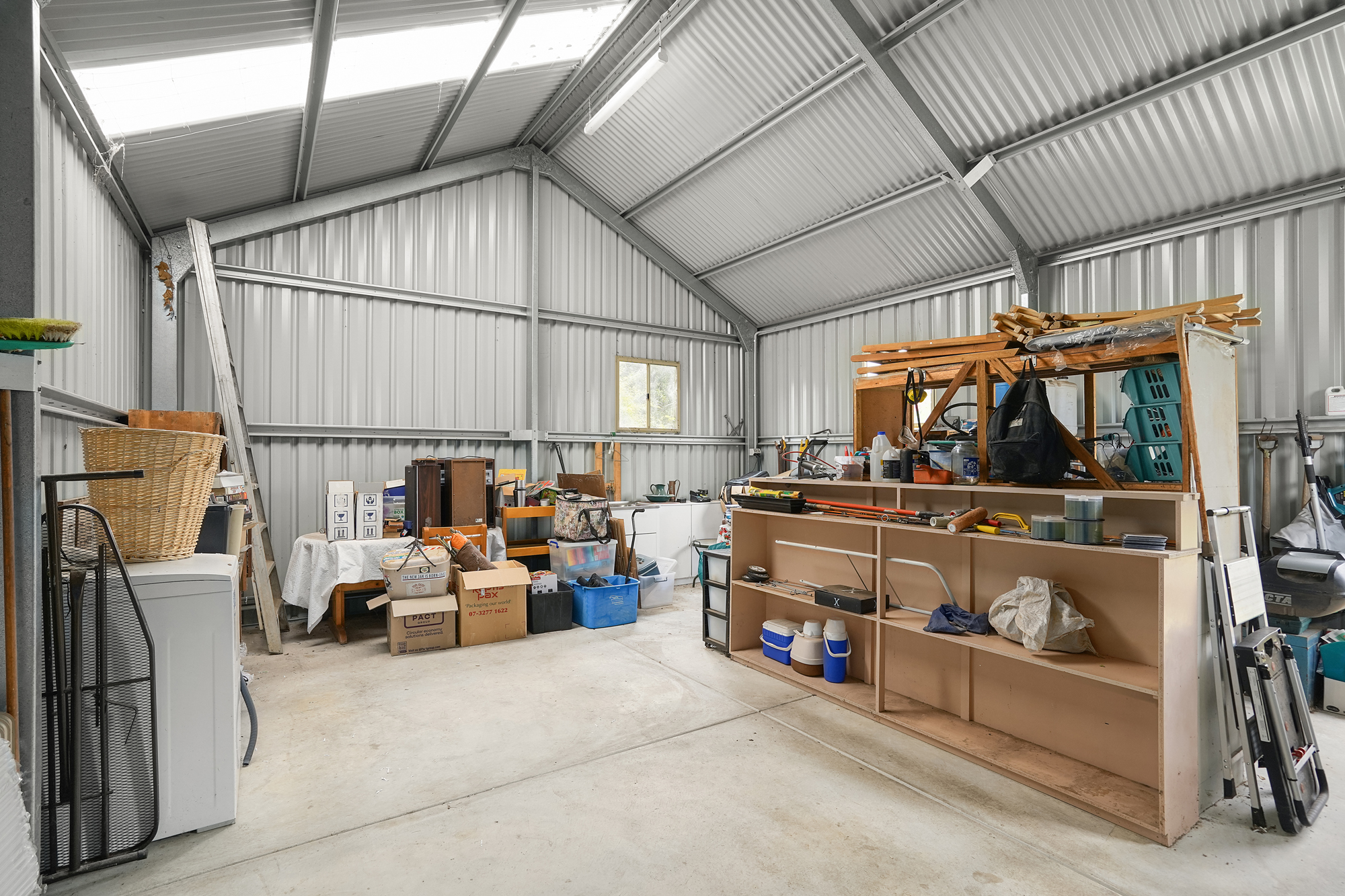 Outside, the property continues to impress. A full concrete driveway leads to a secure single carport, ensuring easy access and excellent off‑street parking. For those needing extra storage or workspace, the impressive 7m x 8m Rambuilt steel shed delivers outstanding versatility.
